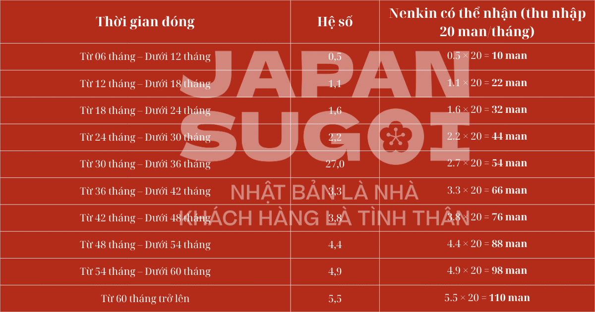 2. Hệ số Nenkin & Cách tính tiền Nenkin như thế nào?